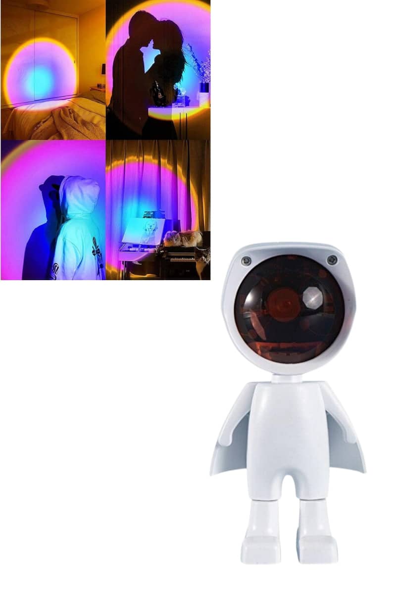 Astronot Işık Projektörü Gökkuşağı Projeksiyon Gece Lambası Hediyelik