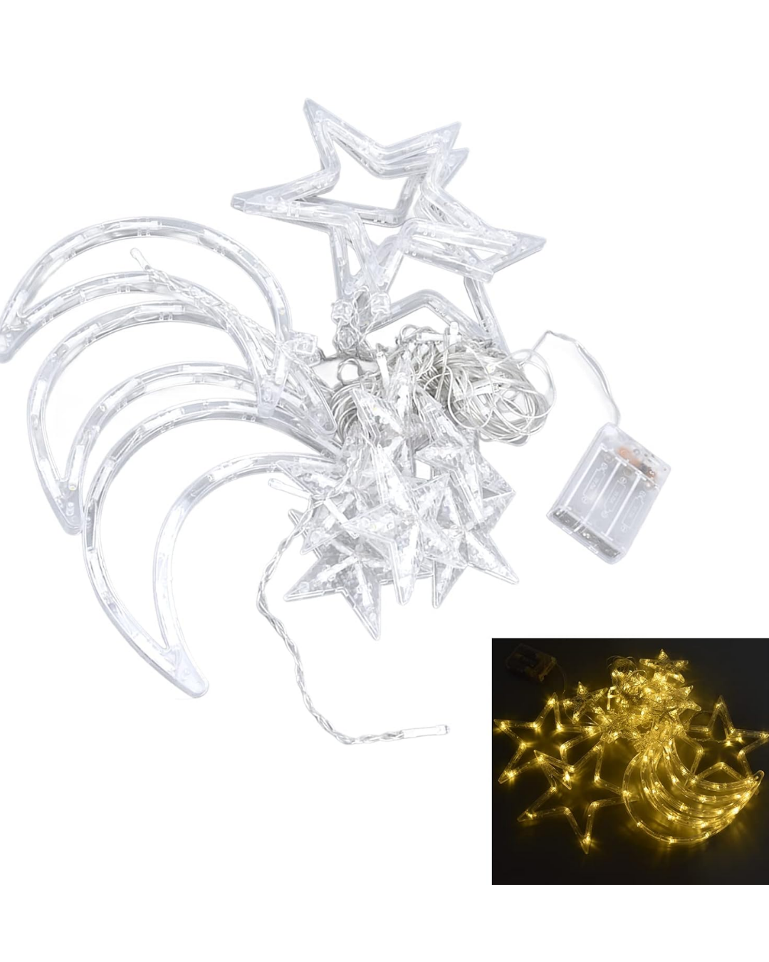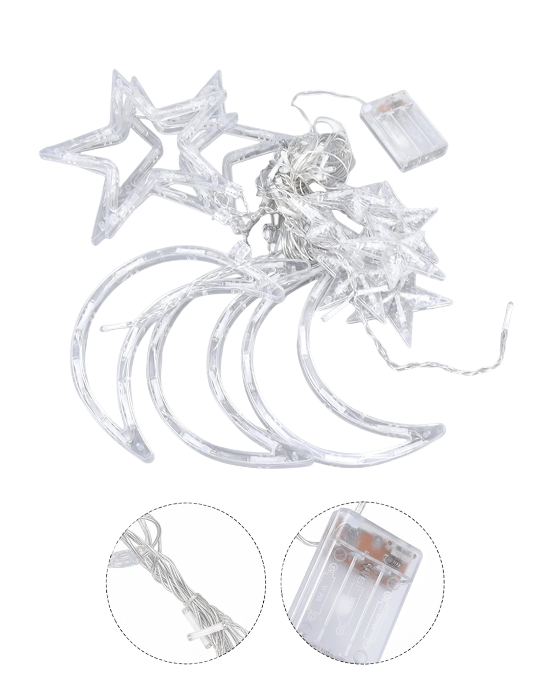 Ramazan ayının huzurlu ve sıcak atmosferini yansıtan bu ay yıldız LED perde ışık, dekoratif aydınlatma arayanlar için mükemmel bir seçimdir. Geniş kullanım alanı sayesinde ev, balkon, bahçe ve organizasyon dekorlarında rahatlıkla kullanılabilir. İki farklı ışık modu ile ortama göre ayarlanabilir aydınlatma sağlar. Hem günlük kullanım hem de özel gün süslemeleri için estetik ve pratiktir.
