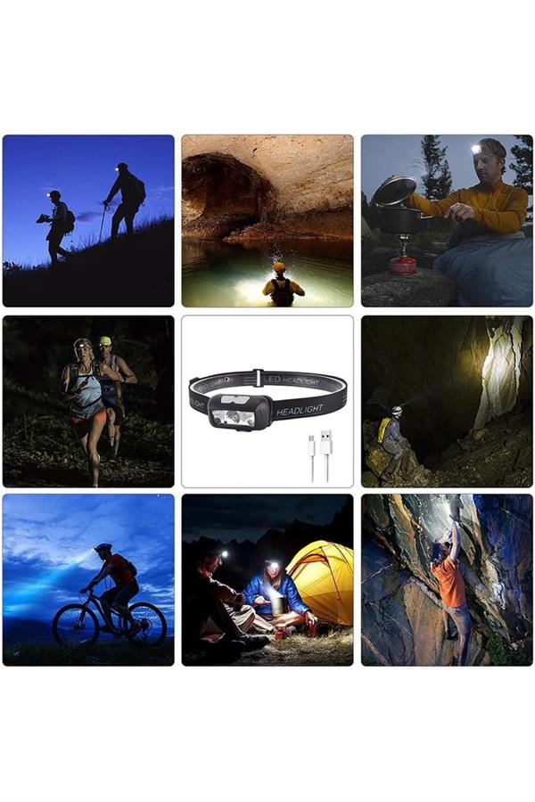 Kafa Lambası El Fenerli Kamp Lambası USB Şarjlı Esnek Lamba