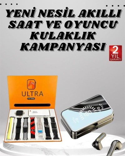 AKILLI SAATTam Uyumlu Dokunmatik Kare Akıllı Saat, 2.09 inç HD IPS ekranıyla üstün bir görüntü deneyimi sunarak net ve canlı bir kullanım sağlar. Bildirimlerinizi takip edebilir, arama yapabilir ve bunları doğrudan saat üzerinden gerçekleştirebilirsiniz. Sesli görüşme özelliği, çağrı almayı ve sonlandırmayı pratik hale getirerek telefonu cebinizden çıkarmadan iletişim kurmanıza olanak tanır. Android ve iOS cihazlarla tam uyumluluk sağlayan bu akıllı saat, günlük yaşamınızı kolaylaştırmak için geliştirilmiştir.Toza ve suya dayanıklı tasarımı sayesinde her türlü hava koşulunda güvenle kullanabilirsiniz. Uyku takibi, kalori ölçümü ve çoklu spor modu gibi özellikleri ile sağlığınızı ve aktivitelerinizi anlık olarak takip etmenizi sağlar. Üst düzey Bluetooth bağlantısı, müzik çalma ve uzaktan kontrol imkânı sunarak eğlencenizi artırır. Farklı yedi kordon seçeneğiyle modern, sportif ve klasik tarzlara uyum sağlayarak stilinize özel bir görünüm kazandırır. 49 mm gövde ve 2 inç geniş ekran, maksimum verimlilik ve rahat bir kullanım sunarken, yüksek kapasiteli polimer pili ile uzun süreli performans sağlar.Ayrıca, kan basıncı ve nabız ölçer özelliği sayesinde sağlık takibinizi yapabilir, Bluetooth araması, özel numara arama, kronometre, parlaklık ayarı, uzaktan fotoğraf çekme, hava durumu takibi ve telefon bulma gibi birçok ek fonksiyonla günlük hayatınızı daha pratik hale getirebilirsiniz. Hem işlevselliği hem de şık tasarımıyla akıllı saat deneyiminizi bir üst seviyeye taşıyan bu model, her yaşam tarzına uygun bir kullanım sunar.KULAKLIKTelefon şarj etme özelliği ve ayna tasarımıyla dikkat çeken bu kablosuz kulaklık, çift dijital gösterge ekranı sayesinde şarj seviyesini anlık olarak takip etme imkanı sunar. Güçlendirilmiş bas özelliği ile daha derin ve etkileyici bir ses deneyimi sağlarken, gürültü önleyici mikrofon teknolojisi sayesinde konuşmalar sırasında sesiniz net bir şekilde karşı tarafa iletilir.Bluetooth 5.0 teknolojisi ile 10 metreye kadar kesintisiz bağlantı sunan kulaklık, HFP, HSP, A2DP ve AVRCP protokollerini destekleyerek geniş uyumluluk sağlar. IPX5 su geçirmezlik seviyesi sayesinde spor yaparken veya hafif yağmurlu havalarda güvenle kullanılabilir. 50mAh kapasiteli kulaklık pili ve 2000mAh kapasiteli şarj çantası sayesinde 5-6 güne kadar uzun kullanım süresi sunar. Yaklaşık 4.5 saat içinde tamamen şarj olan kulaklık, tekli veya çiftli kullanım desteğiyle esneklik sağlar.Dokunmatik kontrol özelliği sayesinde müzik çalma/duraklatma, çağrı cevaplama gibi işlemler kolaylıkla gerçekleştirilebilir. iOS güç göstergesi ile pil durumu takip edilebilir ve sesli komut istemi sayesinde kullanım kolaylığı sağlanır. Şık ve modern siyah tasarımı ile estetik bir görünüm sunan kulaklık, paket içeriğinde 2 adet Bluetooth kulaklık, 1 adet şarj kutusu, 1 adet şarj kablosu ve 1 adet kullanım kılavuzu ile birlikte gelir.