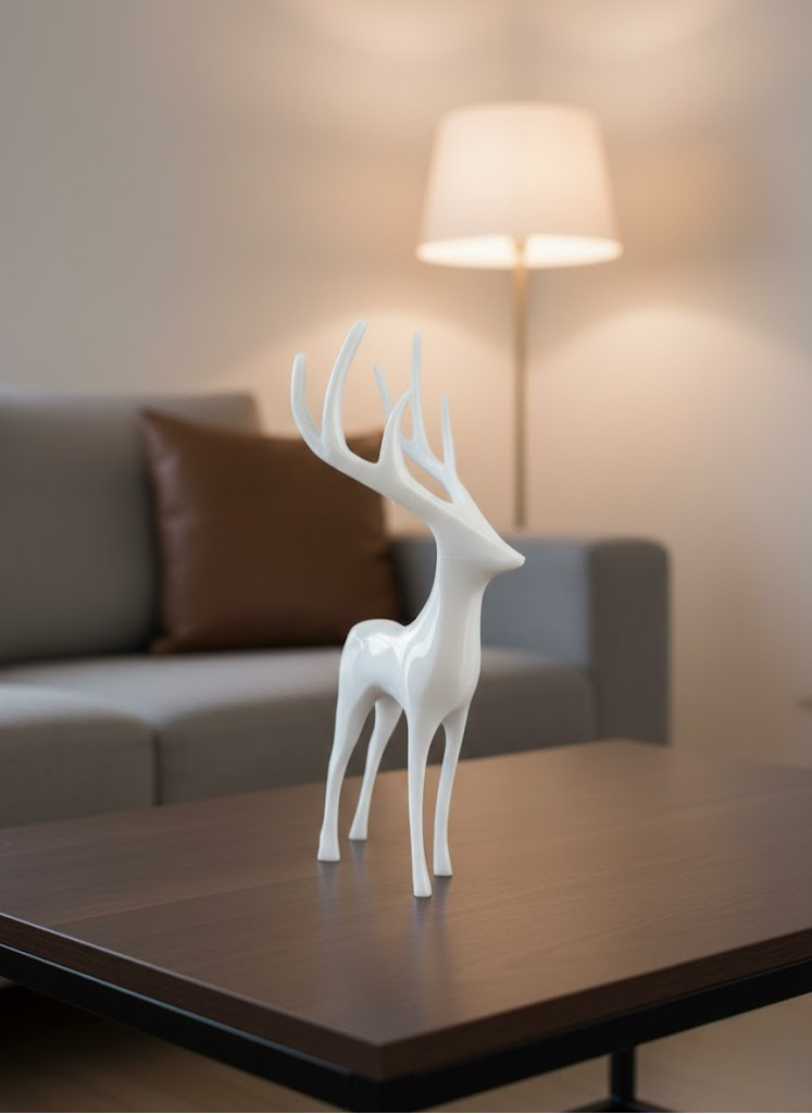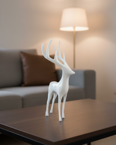 Dekoratif beyaz geyik figürü, şıklığı ve sadeliği bir araya getiren zamansız bir tasarıma sahiptir. Uzun formu sayesinde raflarda ve masa üstlerinde estetik bir duruş sergiler. Ev dekorasyonunda doğal, modern veya İskandinav tarzı sevenler için ideal bir aksesuardır. Tek başına güçlü bir vurgu oluşturur, diğer dekoratif objelerle birlikte kullanıldığında bütünlüklü bir görünüm sağlar.