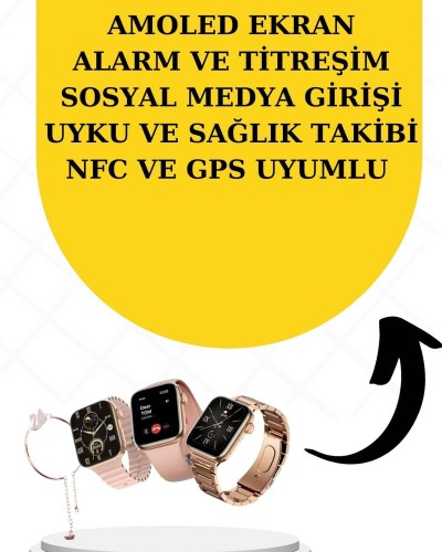 Yeni Nesil Mini Kadın Akıllı Saat, şıklığı ve fonksiyonelliği bir araya getiren tasarımıyla kadınlar için ideal bir seçenek sunuyor. Almanya üretimi ultra dayanıklı model, özel wireless şarj özellikleriyle öne çıkıyor ve Türkçe menüsü sayesinde kullanıcı dostudur. Kutu içeriğinde, mini akıllı saat, 3 farklı kordon, hediye bileklik, wireless şarj kablosu ve kullanım kılavuzu bulunmaktadır. Şık pembe kutusu, hediye olarak tercih edilmesini sağlayan bir özellik taşır. 41 mm kavisli oval kenarlı yeni tasarımı ve 1,70 inç AMOLED ekranı ile yüksek çözünürlükte HD görüntü sağlar.