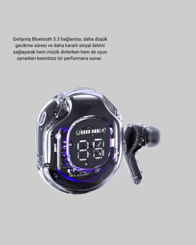 Kompakt, hafif ve modern tasarımı hem taşımayı kolaylaştırır hem de şık bir görünüm sunar. Günlük kullanım, telefon görüşmeleri, oyun deneyimleri ve spor aktiviteleri için ideal olan bu model, gelişmiş teknolojiyi estetik bir tasarımla birleştirir. Mükemmel ses kalitesi arayan herkes için üstün bir performans sunar.