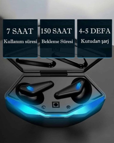 Eğlenceyi her an yanınızda taşımak isteyenler için mükemmel bir seçenek olan bu Bluetooth kulaklık, oyun ve müzik deneyimlerinizi zenginleştirir. Aktif gürültü engelleme teknolojisi sayesinde dış çevreyi tamamen izole ederek sadece oyun veya müzik seslerini duymanızı sağlar. Kulaklık, 4-5 saatlik kullanım süresi sunarken, şarj kutusu ile uzun süre kesintisiz kullanım sağlar. 3D ses teknolojisi ile oyun oynarken veya müzik dinlerken her sesin net ve detaylı bir şekilde duyulmasını sağlar, böylece oyun içindeki ses efektlerini ve müzikleri en ince ayrıntısına kadar duyabilirsiniz. Bluetooth 5.0 bağlantı teknolojisi ile bağlantı hızı yüksek, sinyal kararlılığı ise mükemmeldir.