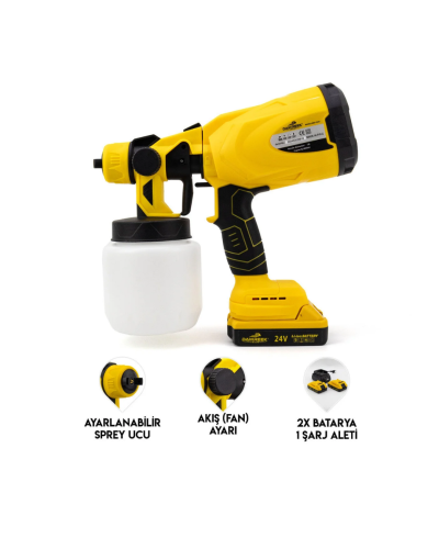 Şarjlı püskürtme tabancası, yaratıcılığını ortaya koymak isteyen kullanıcılar için pratik bir yardımcıdır. Hobi ve dekorasyon projelerinde fırça ve rulo zahmetini ortadan kaldırarak keyifli bir boyama deneyimi sunar. Temiz, hızlı ve kontrollü uygulama isteyen herkes için ideal bir tercihtir.