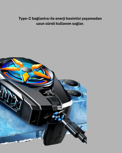 Type-C bağlantısı sayesinde enerji kesintisi olmadan uzun süreli soğutma sunar.