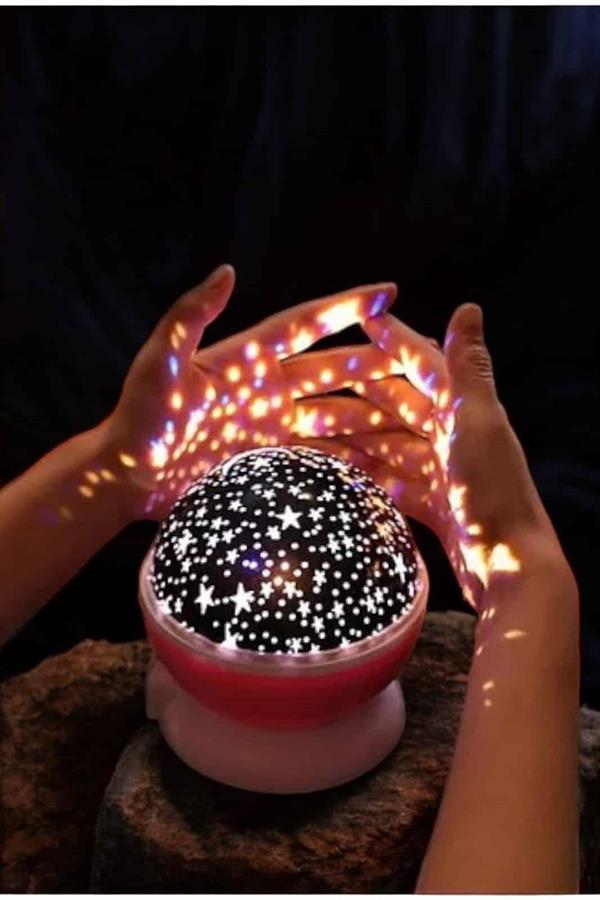 Yıldızlı Gökyüzü Projeksiyon Gece Lambası, her yaştan insan için muazzam bir görsel deneyim sunar. Mavi ve mor ışıklarla dönen yapısı, tavanınızda inanılmaz bir yıldızlar geçidi yaratır ve odanıza hareketli gezegenler, ay ve samanyolu gibi muazzam manzaralar yansıtarak adeta gökyüzünün büyüsünü evinize taşır. Özellikle çocuklar için mükemmel bir gece lambası olan Star Master, karanlıktan korkan çocukların odasında rahatlıkla kullanılabilir ve onların uykuya geçişini daha huzurlu hale getirir. Şeffaf üst kapak sayesinde ışık doğrudan tavana yansıtılabilir veya farklı bir açıyla yönlendirilerek farklı bir atmosfer oluşturulabilir. Işık seviyesini ve rengini ayarlayarak odanızın ambiyansını istediğiniz şekilde şekillendirebilirsiniz. Ayrıca, gözleri rahatsız etmeyen tasarımı sayesinde uzun süreli kullanımlarda bile herhangi bir rahatsızlık yaratmaz. 4 adet AAA pil ile çalışan bu projeksiyon gece lambası, kolay taşınabilirlik sunar ve enerji verimliliği sağlar. Yıldızlar, gezegenler ve ayın büyüleyici ışıklarıyla odanızı aydınlatırken, hem görsel bir şov hem de rahatlatıcı bir atmosfer yaratır.