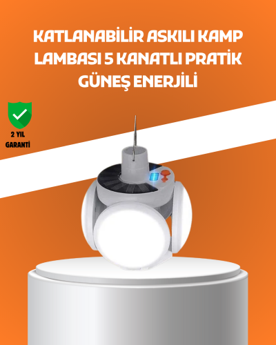 Bu çok amaçlı LED lamba, hem masa üstünde hem de yukarıdan asılarak kullanılabilir. Katlanabilir LED panelleri farklı yönlere çevrilerek ortamın ihtiyacına göre özelleştirilmiş aydınlatma sağlar. Solar panel ile güneşten şarj olabilir, aynı zamanda USB bağlantısıyla şehir elektriğinden de şarj edilebilir.