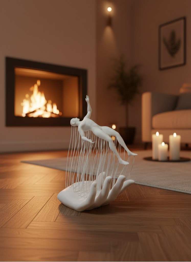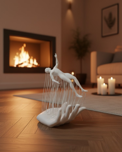 Dekoratif El İnsan Figürü Beyaz, soyut sanatın modern yorumunu ev dekorasyonuna taşır. El formunun üzerinde yükselen insan figürü, güçlü ve anlamlı bir estetik sunar. Detaylı işçiliği sayesinde bulunduğu ortamda hemen fark edilir.