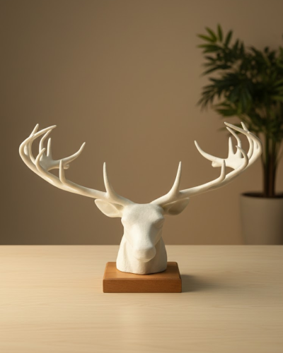 25 cm genişliğe sahip bu dekoratif geyik başı heykel, modern ve minimalist çizgileriyle yaşam alanlarınıza estetik bir dokunuş katar. Pürüzsüz yüzeyi, zarif boynuz yapısı ve dengeli formu sayesinde hem salon, ofis, yatak odası hem de çalışma alanlarında şık bir atmosfer oluşturur. Ürün, yüksek kalite malzemeden üretilmiş olup uzun süre formunu korur ve renk solması yapmaz. Fotoğraf çekimlerinde arka plan objesi, vitrin dekorasyonu veya masa üzerinde sanat eseri etkisi yaratmak için idealdir. Yumuşak ve doğal tonlardaki dekorlarla mükemmel uyum sağlar, mekanınıza sıcak ve dengeli bir karakter kazandırır.