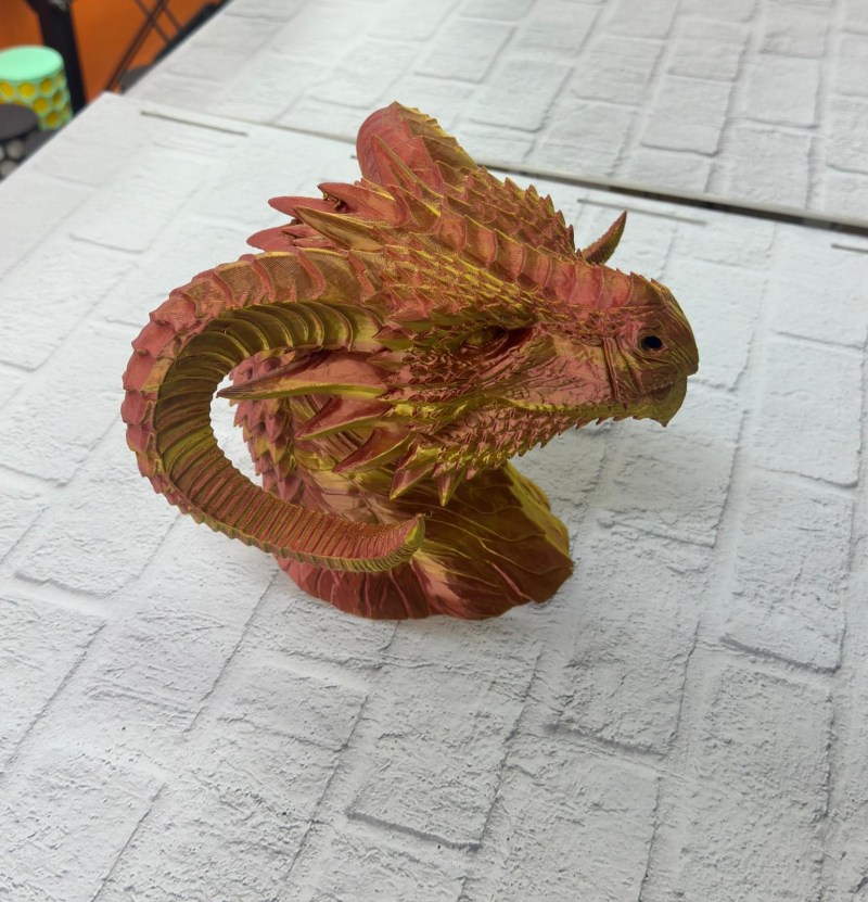 Gold ve kırmızı tonların birleşimiyle tasarlanan bu özel ejderha heykeli, dekorasyonunuzda adeta bir sanat eseri etkisi yaratır. Üzerindeki metalik ışıltı, ejderhanın keskin detaylarıyla birleşerek oldukça dikkat çekici bir görünüm sunar. Ejderhanın pullu yüz yapısı, kıvrımlı boynuzu ve gerçekçi kabartma dokusu, ürünü sıradan bir dekor parçasından çok daha öteye taşır. Hem oturma odası hem de ofis ve koleksiyon köşeleri için mükemmel bir seçimdir.