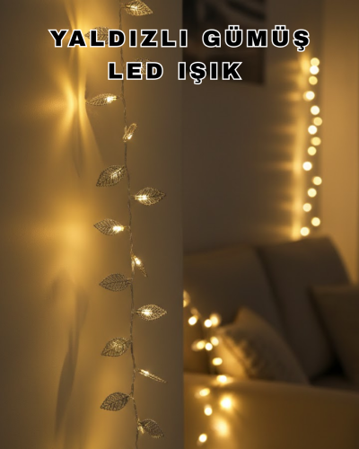 Pilli Gümüş Yaprak LED Işık Ev...