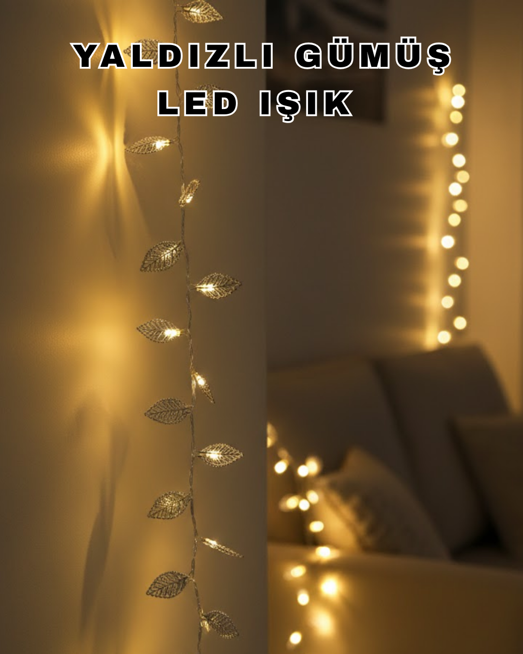 Sıcak ışık rengi, ortamda huzurlu ve sakin bir atmosfer yaratır. Günlük ev dekorasyonunda olduğu kadar yılbaşı, davet ve özel gün süslemelerinde de tercih edilebilir. Gümüş tonları sayesinde hem modern hem klasik dekorasyon stillerine uyum sağlar.