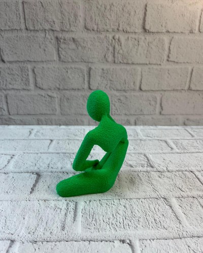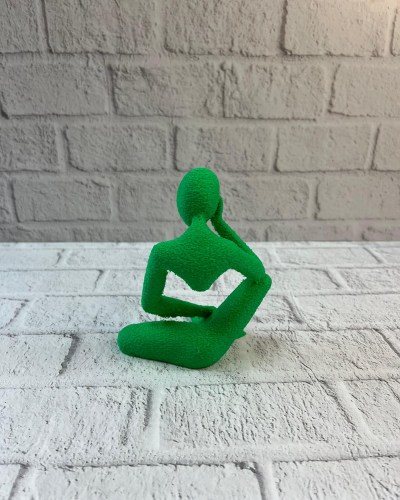 Dekoratif insan figürü, sade çizgileri ve özgün duruşuyla modern dekorasyon anlayışını yansıtır. Yeşil tonu sayesinde doğal ve enerjik bir görünüm sunar. 8×13 cm boyutu, ürünü hem tek başına hem de farklı dekoratif objelerle birlikte kullanmaya uygun hale getirir. Salon, ofis, kitaplık veya çalışma masası üzerinde dekorasyonu tamamlayan zarif bir detay olarak öne çıkar.
