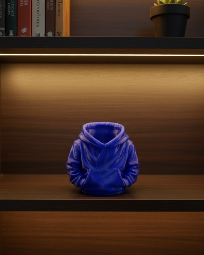 Lacivert tonu, çalışma alanlarında odaklanmayı destekleyen sakin bir atmosfer yaratır. Özellikle evde çalışma alanları, ofis masaları ve öğrenci odaları için uygun bir masa aksesuarıdır. Hoodie formu, ürünü klasik kalemliklerden ayırarak özgün bir stil sunar.