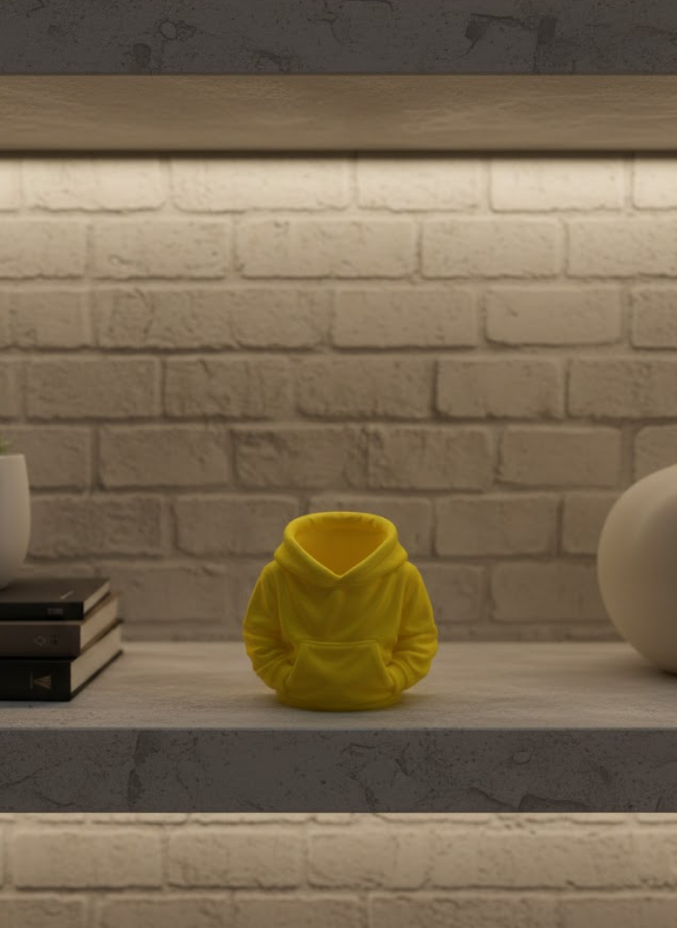 Sarı rengi, enerjik ve canlı bir görünüm sunarak çalışma alanını daha keyifli hale getirir. Özellikle genç odaları, çalışma köşeleri ve yaratıcı ofis alanlarında dekoratif bir tamamlayıcı olarak öne çıkar. Hoodie formu, ürüne özgün bir stil kazandırır ve klasik masa aksesuarlarından ayrılmasını sağlar.