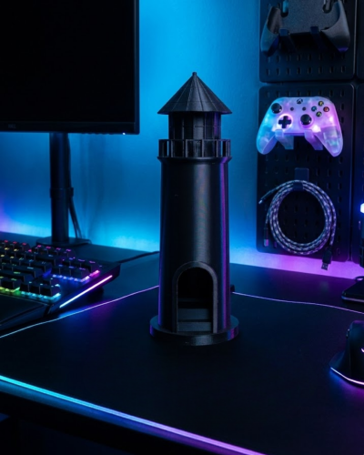 Deniz temalı dekorasyon sevenler için özel olarak tasarlanan 3D siyah deniz feneri, evinizde modern bir sahil esintisi yaratır. Üç boyutlu tasarım detayları ve balkonlu üst yapısı ile gerçekçi bir mimari form sunar.