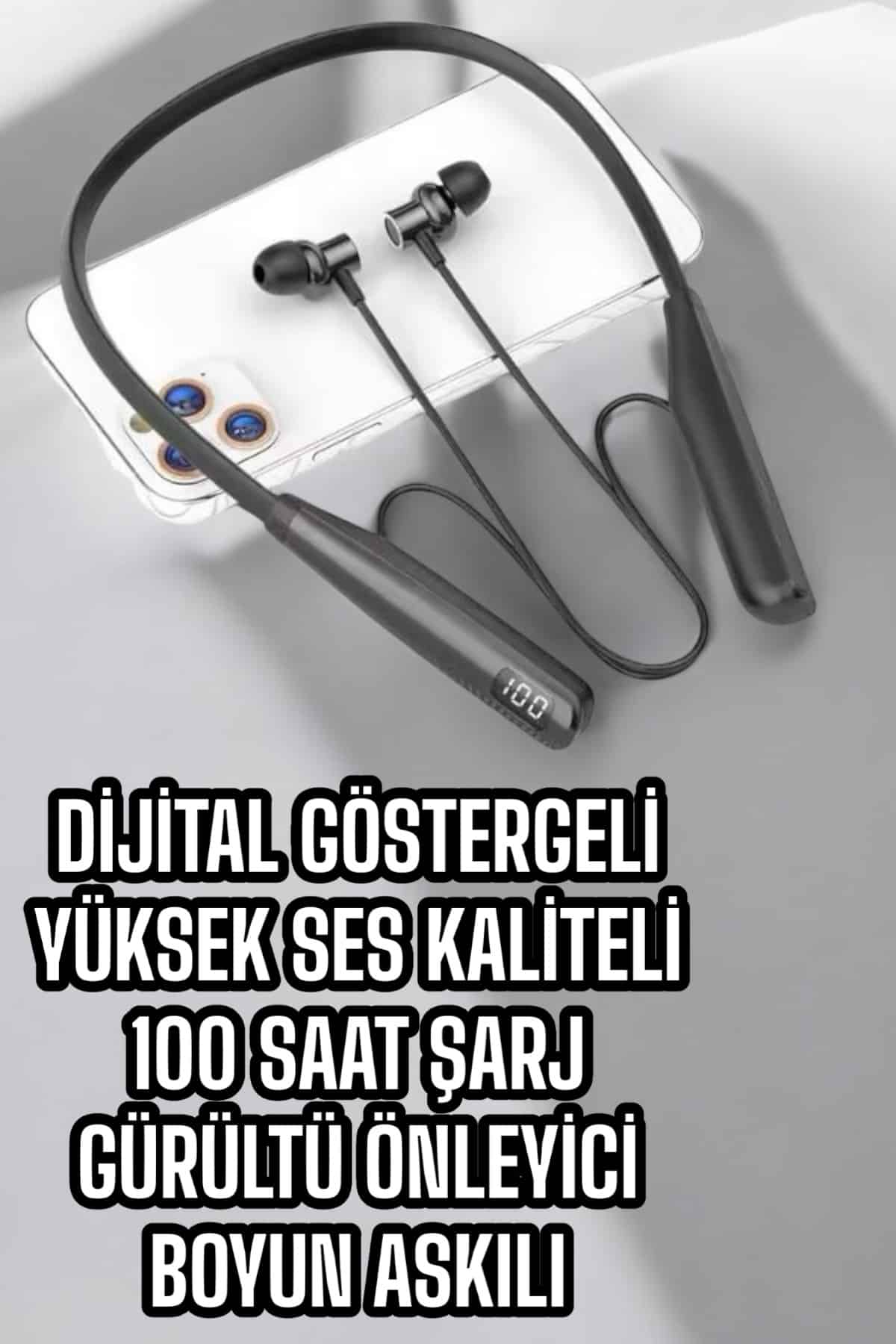 100 Saat Kablolu Boyun Askılı Dijital Göstergeli Bluetooth Kulaklık