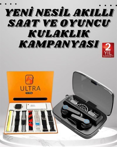 AKILLI SAATTam Uyumlu Dokunmatik Kare Akıllı Saat, 2.09 inç HD IPS ekranıyla üstün bir görüntü deneyimi sunarak net ve canlı bir kullanım sağlar. Bildirimlerinizi takip edebilir, arama yapabilir ve bunları doğrudan saat üzerinden gerçekleştirebilirsiniz. Sesli görüşme özelliği, çağrı almayı ve sonlandırmayı pratik hale getirerek telefonu cebinizden çıkarmadan iletişim kurmanıza olanak tanır. Android ve iOS cihazlarla tam uyumluluk sağlayan bu akıllı saat, günlük yaşamınızı kolaylaştırmak için geliştirilmiştir.Toza ve suya dayanıklı tasarımı sayesinde her türlü hava koşulunda güvenle kullanabilirsiniz. Uyku takibi, kalori ölçümü ve çoklu spor modu gibi özellikleri ile sağlığınızı ve aktivitelerinizi anlık olarak takip etmenizi sağlar. Üst düzey Bluetooth bağlantısı, müzik çalma ve uzaktan kontrol imkânı sunarak eğlencenizi artırır. Farklı yedi kordon seçeneğiyle modern, sportif ve klasik tarzlara uyum sağlayarak stilinize özel bir görünüm kazandırır. 49 mm gövde ve 2 inç geniş ekran, maksimum verimlilik ve rahat bir kullanım sunarken, yüksek kapasiteli polimer pili ile uzun süreli performans sağlar.Ayrıca, kan basıncı ve nabız ölçer özelliği sayesinde sağlık takibinizi yapabilir, Bluetooth araması, özel numara arama, kronometre, parlaklık ayarı, uzaktan fotoğraf çekme, hava durumu takibi ve telefon bulma gibi birçok ek fonksiyonla günlük hayatınızı daha pratik hale getirebilirsiniz. Hem işlevselliği hem de şık tasarımıyla akıllı saat deneyiminizi bir üst seviyeye taşıyan bu model, her yaşam tarzına uygun bir kullanım sunar.KULAKLIKM19 Bluetooth kulaklık, yüksek ses kalitesi ve çift mikrofon performansı ile en iyi kablosuz kulak içi deneyimi sunar. Konuşma sırasında sesi gecikmesiz ve net bir şekilde ileterek üstün bir iletişim sağlar. Müzik dinlerken kararlı sinyali ve süper 3D ses kalitesi sayesinde gecikme yaşamadan en iyi ses performansını hissetmenizi sağlar. Spor ve egzersiz sırasında kulaklık yerinde sabit kalır, böylece hareket halindeyken bile müziğinizin keyfini çıkarabilirsiniz.Dayanıklı ve yüksek kaliteli malzemelerden üretilen kulaklık, suya ve tere karşı dayanıklıdır. IPX-7 su geçirmezlik standardına sahip olup, terleme veya su sıçramalarına karşı koruma sunar, ancak havuz ve deniz suyu kullanımı önerilmez. Geliştirilmiş lityum polimer bataryası sayesinde şarj kutusu ile birlikte toplamda 45 saate kadar kullanım süresi sunar. Kulaklığın manuel kontrol tuşları sayesinde çağrıları kolayca yönetebilir, ses seviyesini ayarlayabilir ve müzik listenizde ileri-geri geçiş yapabilirsiniz.Bluetooth 5.3 teknolojisi ile tüm Android ve iOS cihazlarla uyumludur ve 10 metre mesafeye kadar kesintisiz bağlantı sağlar. Hızlı şarj desteği ile 1 saat içinde tamamen şarj olurken, şarj kutusunun tam dolumu 2 saat sürer. Paket içeriğinde 2 adet çift mikrofonlu kablosuz kulaklık, 1 adet powerbank şarj kutusu ve 1 adet USB şarj kablosu bulunmaktadır. Yüksek ses kalitesi, uzun pil ömrü ve güçlü bağlantı özellikleriyle M19 Bluetooth kulaklık, günlük kullanım, spor ve seyahatleriniz için ideal bir seçimdir.