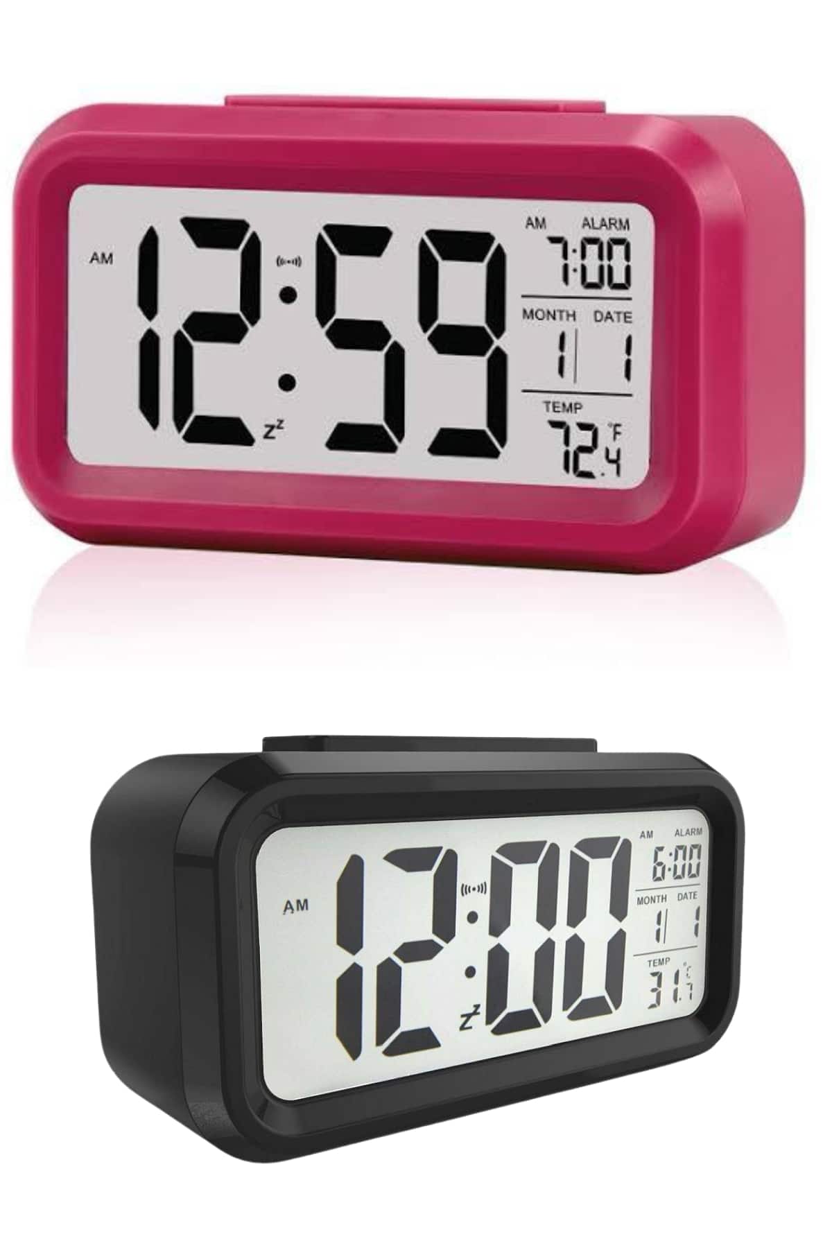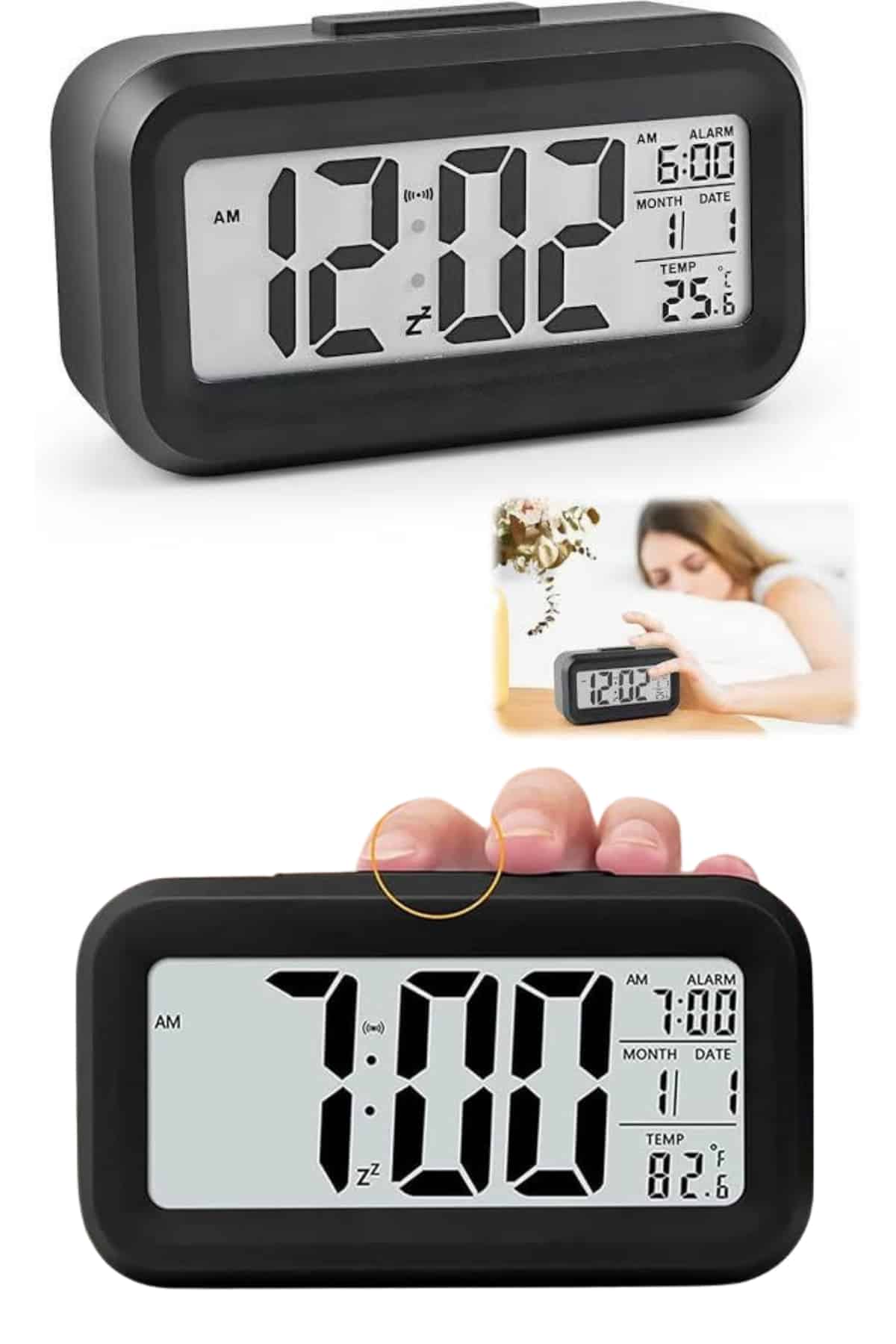 Pratik kullanımı ve şık tasarımıyla öne çıkan bu dijital masa saati, her anı planlamanıza yardımcı olmak için ideal bir çözümdür. Büyük LCD ekranı sayesinde saati, tarihi ve sıcaklık bilgilerini rahatlıkla takip edebilirsiniz. Kararmış ortamlarda dahi ekranın otomatik olarak aydınlanması, saatin her koşulda net bir şekilde görünmesini sağlar. 6 saniye sonra kendiliğinden sönen ışık özelliği, gözlerinizi rahatsız etmeden enerji tasarrufu sağlar.