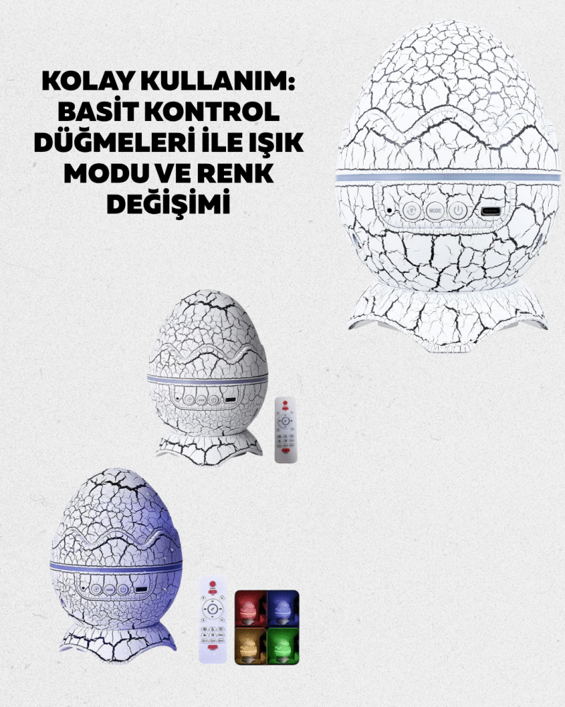 Bu ürün sadece bir ışık kaynağı değil, aynı zamanda dekoratif bir objedir. Dinozor yumurtası formu sayesinde çocukların ilgisini çekerken, ev dekorasyonuna modern ve eğlenceli bir dokunuş katar. Gece uykusuna geçişi kolaylaştırır, huzurlu bir atmosfer sunar. Partilerde, film gecelerinde ya da meditasyon zamanlarında kullanılarak çok yönlü bir kullanım sağlar.