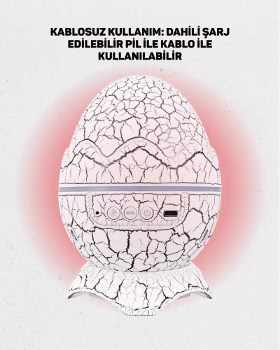 Dinozor yumurtası görünümüne sahip bu projektörlü gece lambası, hem dekoratif hem işlevsel kullanım sunar. Üzerindeki döner projektör sayesinde odanıza yıldızlı gökyüzü yansıtabilir, ışık modlarını isteğe göre değiştirebilirsiniz. Şık tasarımı sayesinde sadece çocuk odasında değil, oturma odasında ya da yatak odasında da kullanılabilir.