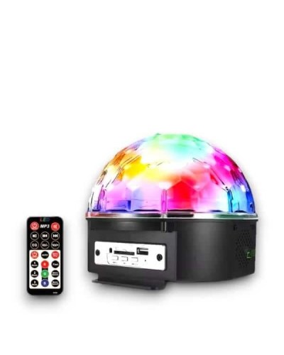 Sese Duyarlı Disko TopuSD Kart ve USB Girişli LED Disko Işıklı Speaker Hoparlör (Kumandalı)Müzik dinlemek hiç bu kadar eğlenceli olmamıştı.Odanızda müzik dinlerken ortama harika bir görsel şölen yaşatmaya ne dersiniz ?Partilerinizde ve kutlamalarınızda SD Kart ve USB Girişli LED Işıklı Kristal Yarım Küre var ise başka bir şeye ihtiyacıınz yoktur.SD Kart ve USB Girişli LED Işıklı Kristal Yarım Küre ile kırmızı, mavi ve yeşil olmak üzere 3 farklı renk kombinasyonu müzik ritmine ayak uyduruyor.SD kart veya USB Bellek desteğiyle istediğiniz şarkıyı SD Kart yada USB Belleğinize yükleyin ve kumanda sayesinde yada üzerinde yer alan tuşları sayesinde müziği başlatın.Müziğin ritmine göre içerisinde yer alan led lambalar hareketli olarak yanıp sönmeye başlayacaktır.Ürünü prize ilk taktığınızda sadece dönerek led ışık saçacaktır.Dahili hoparlör, iyi bir ses kalitesi Bulunduğu ortamı aydınlatan güçlü LED ışık Tak çalıştır sistemiyle prize taktığınız andan itibaren ürünü kolaylıkla çalıştırabilirsiniz.Uzaktan kumanda ile ses kontrolü ve müzikler arası geçiş rahatlıkla sağlanabilir.1,5 Kg ağırlığındadır.Paket içerisinden çıkan Hediye USB Bellek 128 MB hafızaya sahiptir.USB Bellek içerisinde toplam 17 adet deneme amaçlı müzik yüklüdür.İsterseniz USB Belleği bilgisayarınıza takıp içindeki müzikleri silip,yükleyebilirsiniz.