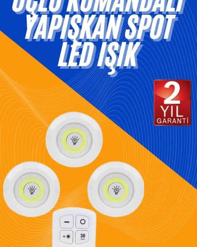 Kumandalı Spot LED Lamba Seti | Ayarlanabilir Işık Şiddeti ve Zamanlayıcı Özellikli – 3’lü PaketYaşam alanlarınıza pratiklik ve şıklık kazandıran bu kumandalı spot LED lamba seti, özellikle banyo ve mutfak gibi aydınlatmaya ihtiyaç duyulan alanlarda konforlu kullanım sunar. Kompakt tasarımı ve kablosuz yapısıyla evinizin her köşesinde kolayca monte edilebilir; ister dolap içlerinde, ister raf altlarında, isterse koridor gibi az ışık alan bölgelerde etkili bir çözüm sağlar.Her biri x3W COB LED teknolojisiyle donatılmış olan spot lambalar, güçlü ve homojen bir aydınlatma sunarken enerji tasarrufunu da ön planda tutar. Ürün, 3 adet AAA pil ile çalışır (piller pakete dahil değildir) ve tamamen kablosuz yapısıyla priz gereksinimini ortadan kaldırır. Bu sayede istediğiniz her alanda özgürce konumlandırabilirsiniz.Ürünün birlikte gelen akıllı kumandası, ışık şiddetini ayarlama, spotları belirli bir mesafeden açıp kapama ve 30 dakikalık zamanlayıcı kurma gibi işlevsel özellikler sunar. Dilerseniz spotların üzerindeki dokunmatik tuşlar ile manuel kontrol de sağlayabilirsiniz. Kumandanın duvara sabitlenebileceği özel haznesi sayesinde her zaman elinizin altında olmasını sağlayabilir, kaybolmasının önüne geçebilirsiniz.Çift taraflı yapışkan bantları sayesinde delme ya da vidalama işlemi gerektirmez; düz yüzeylere kolayca monte edilir ve istenildiğinde iz bırakmadan çıkarılabilir. Hem estetik hem de fonksiyonel bu LED spot seti, ortam aydınlatmasını kişiselleştirmek isteyenler için mükemmel bir tercihtir.