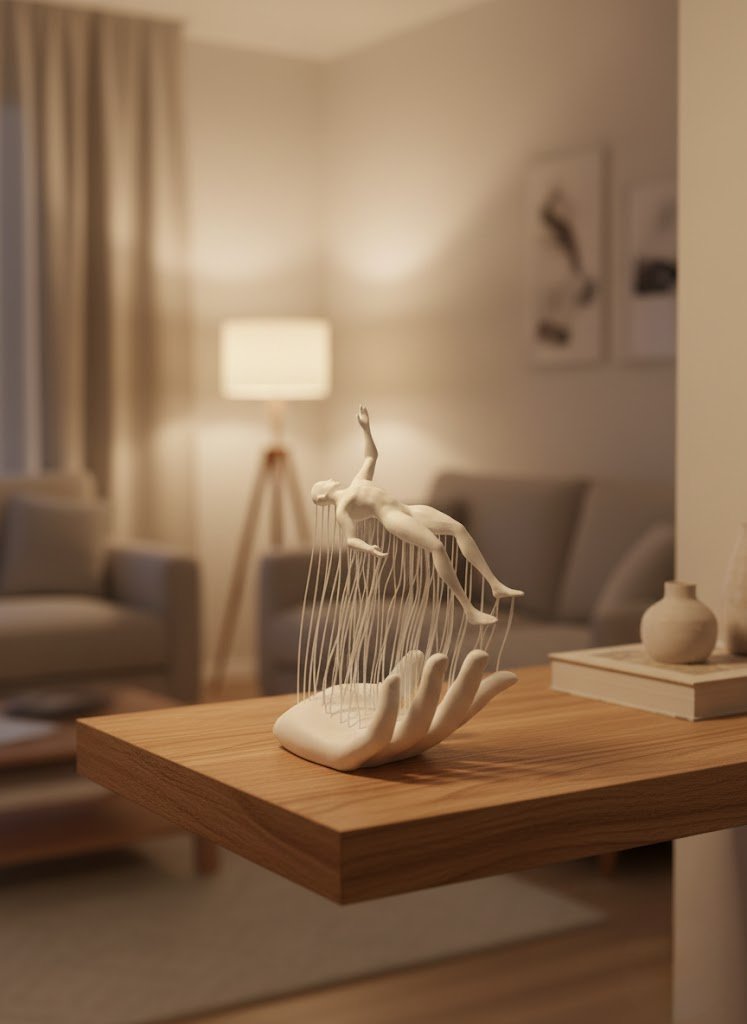 El İnsan Figürü Beyaz, modern ve sanatsal tasarımıyla yaşam alanlarına estetik bir dokunuş kazandırır. El formu üzerinde yer alan insan figürü, özgürlük, denge ve zarafeti simgeleyen soyut bir kompozisyon sunar. Minimal tasarımı sayesinde salon, ofis, çalışma odası veya kitaplık gibi alanlarda kolaylıkla kullanılabilir.