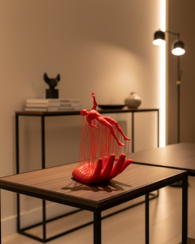 Modern çizgilere sahip kırmızı el formunda insan figürü biblo, soyut ve estetik görünümüyle yaşam alanlarınıza sanatsal bir dokunuş ekler. Raf, kitaplık, TV ünitesi ve konsol üstü kullanım için uygundur. Kompakt 12×18 cm ölçüsü sayesinde farklı alanlarda kolayca konumlandırılabilir. Dekorasyonda fark yaratmak isteyenler için hem şık hem de anlamlı bir tamamlayıcıdır.