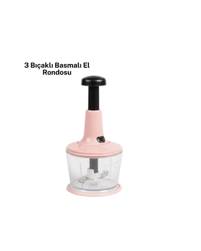 Keskin bıçaklı manuel rondo, mutfakta pratik çözümler sunan kullanışlı bir üründür. Elektrik gerektirmeden çalışan basmalı sistemi sayesinde her ortamda rahatlıkla kullanılabilir. Özellikle hızlı yemek hazırlamak isteyenler için idealdir.