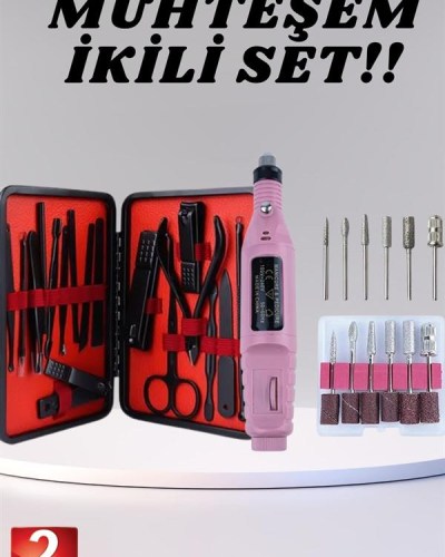 Elektrikli Manikür Pedikür Seti İkili Set 12 Parça Tırnak Bakımı Törpü Protez Çıkarma