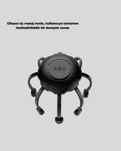 360 derece kapsama sağlayan esnek masaj kolları, baş çevresini sararak tek noktaya değil tüm saç derisine etki eder. Bu sayede masaj hissi daha homojen ve konforlu hale gelir. Üç farklı masaj modu sayesinde kullanıcılar ihtiyacına göre masaj seviyesini kolayca seçebilir. Hafif mod rahatlatıcı bir etki sunarken, orta mod günlük stresin azalmasına yardımcı olur. Yoğun mod ise daha güçlü titreşimlerle derin bir rahatlama hissi sağlar.