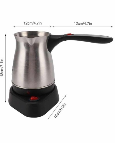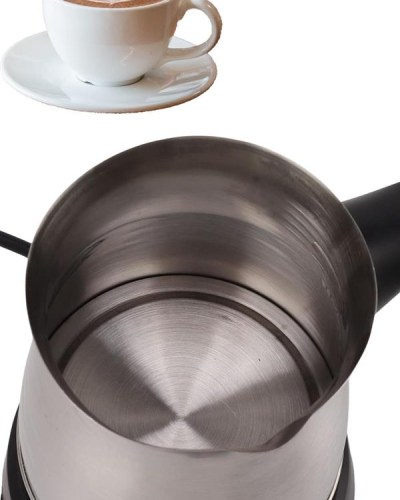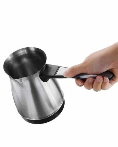 Yüksek performansı ve modern tasarımıyla dikkat çeken bu elektrikli cezve, 800 watt gücüyle mükemmel kahve deneyimi sunar. 300 ml kapasitesi ile 6 fincana kadar Türk kahvesi hazırlama imkânı tanır. Gizli rezistans teknolojisi, güvenli ve verimli bir şekilde kahvenizi pişirirken, aynı zamanda elektrikli cezvenin iç temizliğini de kolaylaştırır.Cezvenin 360 derece dönebilen kablosuz tabanı, pişirme sırasında rahatlık ve esneklik sağlar. Bu özellik, özellikle mutfakta hareket özgürlüğü arayan kullanıcılar için büyük bir avantajdır. Paslanmaz çelikten üretilmiş olan gövde, hem dayanıklı hem de şık bir görünüm sunar. Kolayca temizlenebilen tasarımı, hijyenik bir kullanım sunarak uzun süreli, sağlıklı kahve hazırlamanıza olanak tanır.Üzerinde bulunan kırmızı güç düğmesi sayesinde, cezve açılıp kapanabilir ve kullanım kolaylığı sağlar. Isınmayan, ergonomik kulpu ise kullanım sırasında pratiklik ve güvenlik sağlar. Paslanmaz çelik yapısı, cihazın uzun ömürlü olmasını sağlar, böylece yıllarca rahatlıkla kullanabilirsiniz.Bu elektrikli cezve, lezzetli Türk kahveleri hazırlamak isteyen kahveseverler için mükemmel bir seçimdir. Hem şık tasarımı hem de pratik özellikleriyle, mutfağınıza modern bir dokunuş katacaktır.