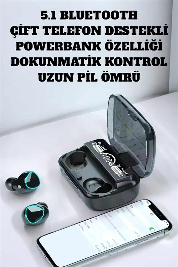 HD Ses ve Çift Mikrofon Performansı: En net ses deneyimini sunar. Çağrı sırasında ses aktarımında gecikme yapmaz ve karşı tarafa kusursuz bir şekilde iletir. Extra Bass ve 3D Ses Kalitesi: Müzik dinlerken yüksek çözünürlüklü bass ve kararlı sinyal kalitesiyle performansı hissettirin. Gecikmesiz ses deneyimi sunar. Spor ve Egzersiz İçin İdeal: Ergonomik yapısı, kulaklığın hareket sırasında yerinde kalmasını sağlar. Terlemeye dayanıklı ve IPX-4 su geçirmez özelliği sayesinde dış mekan aktivitelerinde güvenle kullanılabilir. Uzun Süreli Kullanım: Geliştirilmiş polymer batarya ile kulaklık, powerbank kutusuyla birlikte toplamda 40 saate kadar kullanım sunar. Tek şarj ile 6-8 saat boyunca müzik dinleyebilirsiniz. Kolay Kontrol ve Uyumluluk: Tuşlu manuel kontrol sistemi, gelen çağrıları cevaplama, müzik çalma ve ses seviyesini ayarlama gibi işlemleri telefonunuzu elinize almadan gerçekleştirmenizi sağlar. Tüm Android ve iOS cihazlarla uyumlu çalışır. Dayanıklı ve Şık Tasarım: Kauçuk ve ABS malzeme ile üretilmiş dayanıklı bir gövdeye sahiptir. Siyah renk seçeneği, modern ve profesyonel bir görünüm sunar.Kullanım Talimatı: Powerbank adaptöründen kulaklıkları çıkarın. Telefonunuzun Bluetooth özelliğini açın. Otomatik bağlantıyı gerçekleştirin ve kullanmaya başlayın.Notlar: Ürün tere dayanıklıdır; ancak havuz veya deniz gibi ortamlarda kullanılmamalıdır.Ürün Teknik Özellikleri: Malzeme: Kauçuk-ABS Bluetooth Versiyonu: 5.3 Çalışma Mesafesi: 10 metre Kullanım Süresi: 6-8 saat (Kutu ile toplam +40 saat) Şarj Süresi: Kulaklık 1 saat, kutu 2 saat Ses Kontrolü: Var Su Geçirmezlik: IPX-4 StandardıPaket İçeriği: 2 Adet Çift Mikrofonlu Kablosuz Kulaklık 1 Adet Powerbank Kutusu 1 Adet USB Şarj Kablosu