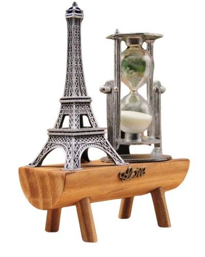 Eyfel Kulesi Tasarımlı Kum Saati Kristalleştirilmiş Kum Saati Dekoratif Ahşap Görünümlü