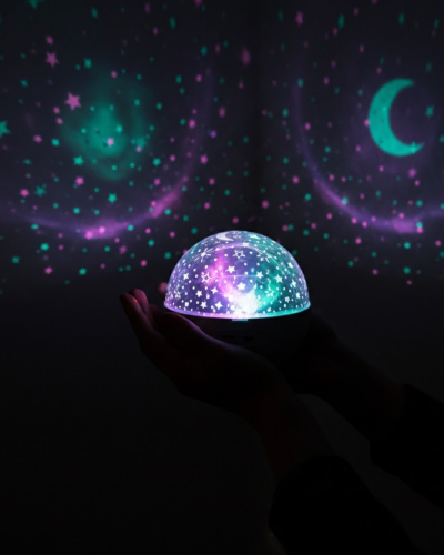 Yıldız yansıtma özelliği ile tavan ve duvarlarda gökyüzü hissi oluşturur. Ayarlanabilir parlaklık ve yansıtma hızı sayesinde hem sakin hem de dinamik ortamlar yaratılabilir. Bu özellik, ürünü yalnızca bir gece lambası değil aynı zamanda dekoratif bir aydınlatma çözümü haline getirir.