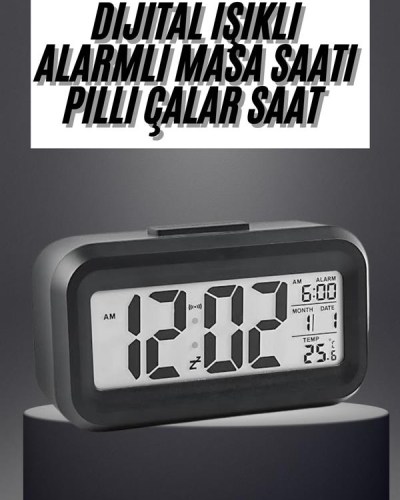 Şık ve modern tasarımıyla dikkat çeken bu dijital masa saati, günlük yaşamınıza pratiklik ve zarafet katıyor. Büyük LCD ekranı, saati, tarihi ve ortam sıcaklığını net bir şekilde görüntülemenizi sağlar. Karanlık ortamlarda ekranın otomatik olarak aydınlanması, her zaman saatinizi rahatça okumanızı sağlar. 6 saniye sonra kendiliğinden kapanan ışık, enerji tasarrufu sağlarken, aynı zamanda uyku sırasında sizi rahatsız etmez.Alarm fonksiyonu ile sabahları zamanında uyanmanıza yardımcı olan bu masa saati, günlük planlamanızı kolaylaştırmak için tarih ve sıcaklık bilgilerini de sunar. Şık ve kompakt yapısı, her masa için uygun hale getirir ve evde ya da ofiste rahatlıkla kullanılabilir.Ürün ölçüleri 4,3 x 15,1 x 7,7 cm olup, 3 adet AA pil ile çalışır (piller dahil değildir). Paket içeriğinde bir adet dijital masa saati yer almaktadır. Hem fonksiyonel hem de estetik açıdan hoş bir masa saati arayanlar için ideal bir tercihtir.