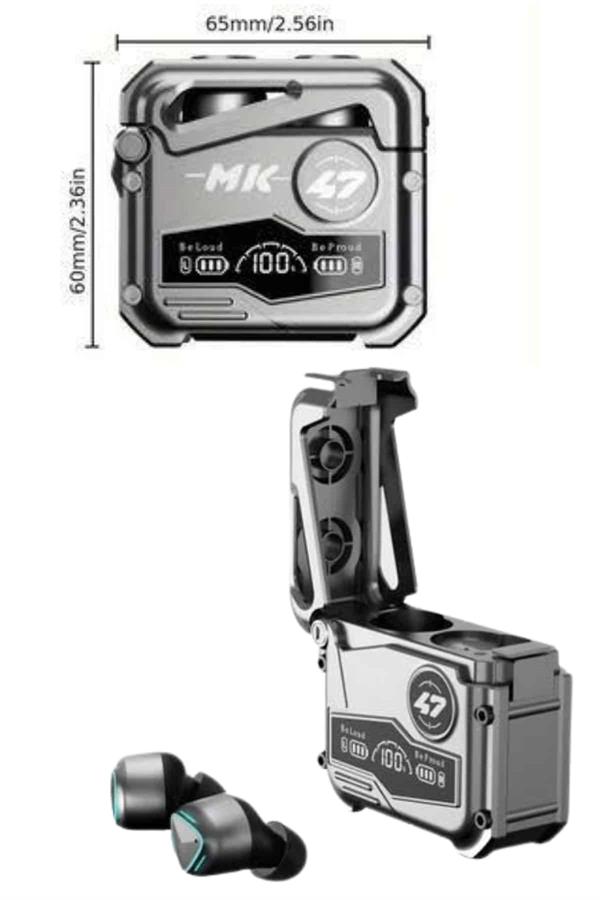 MK47 Bluetooth kulaklık, ister oyun oyna ister müzik dinle, her senaryoda yanınızda! Gelişmiş Bluetooth 5.0 teknolojisiyle donatılan bu kulaklık, anında bağlantı kurar ve düşük gecikme modu sayesinde sesin görüntüyle senkronunu kaybetmez.Performans Odaklı Tasarım13 mm dinamik sürücüler ile donatılmış MK47, net tizler ve derin baslarla sizi adeta sesin içine çeker. Ergonomik yapısı, kulağınıza tam oturur ve uzun süreli kullanımda bile rahatsızlık vermez.Oyun & Müzik Modu Tek Tuşla3 kez dokunarak modlar arasında geçiş yapabilir, ihtiyaç duyduğunuz performansı anında yakalayabilirsiniz. Oyunlarda rakiplerinizi önce duymanın farkını yaşayın!Uzun Süreli GüçHer kulaklık 4-5 saat kesintisiz kullanım sunarken, 400mAh kapasiteli şarj kutusu kulaklıkları 4 kez daha doldurabilir. Şarj derdi yok, kesintisiz keyif var!Su Sıçramalarına DayanıklıIPX5 sertifikası sayesinde yağmurlu havada ya da spor yaparken gönül rahatlığıyla kullanabilirsiniz.Öne Çıkan Özellikler: Hızlı eşleşme ve otomatik bağlantı Parmak izi dokunmatik kontrol Gürültü azaltıcı mikrofon Sesli asistan desteği Oyun modu için düşük gecikme Şık LED dijital ekran göstergesiTeknik Özellikler: Model: MK47 Bluetooth: 5.0 Şarj Kutusu Kapasitesi: 400mAh Kulaklık Kapasitesi: 40mAh Mikrofon Hassasiyeti: -38dB Su Geçirmezlik: IPX5 Şarj Arayüzü: Type-C Kapsama Alanı: 10 metre
