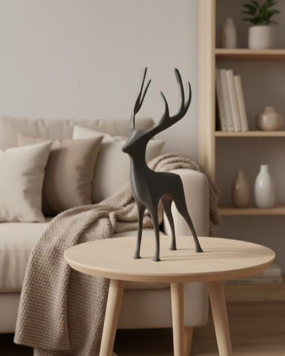Gri Geyik Figürü, doğal formlardan ilham alan modern tasarımıyla ev dekorasyonuna zarif bir dokunuş ekler. 12×24 cm boyutu sayesinde salon, oturma odası veya ofis ortamlarında rahatlıkla sergilenebilir. Dengeli ölçüleri, ürünü hem tek başına hem de dekoratif objelerle birlikte kullanıma uygun hale getirir.