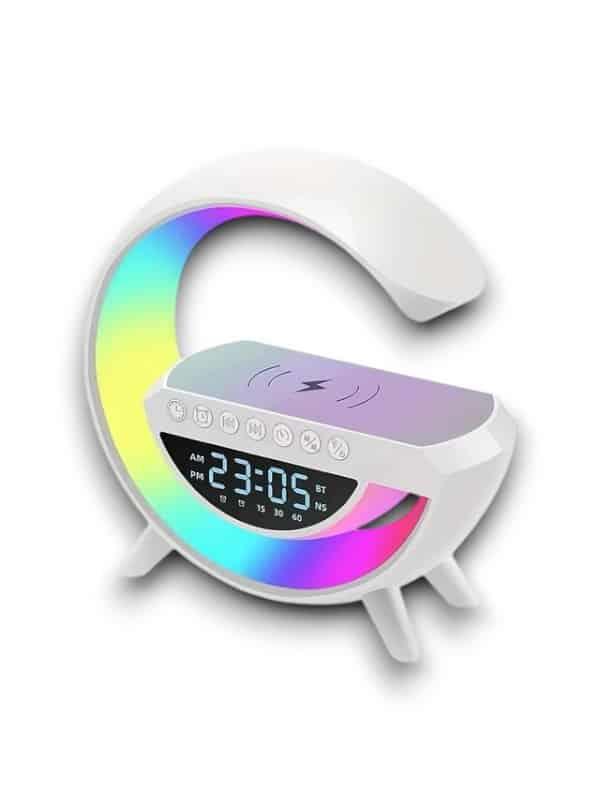 Kablosuz Şarj Özellikli Bluetooth Hoparlör Gece Lambası’nın rahatlığının tadını çıkarın Bu hepsi bir arada cihaz, size kristal netliğinde bir ses ve mükemmel bir ortam sağlamak için tasarlanmıştır. Dahili NFC şarjı, kablosuz şarj özelliği, ayarlanabilir parlaklık ayarları ve sezgisel çalar saati ile bu hoparlörün evinize rahatlık ve stil katacağından emin olabilirsiniz.  ahili Bluetooth 5.0 Hoparlör, müzik akışı için telefonunuza veya başka bir cihaza kolayca bağlanın. Kablosuz şarj teknolojisi ve NFC Şarj ile telefonunuzu ve hoparlörü kabloları takmadan şarj etmenizi sağlar. LED gece lambası özelliği sıcak beyazdan RGB ışıklara ayarlanabilir. FM radyo ve birçok farklı fonksiyonu ile başucu arkadaşı olarak kullanım için mükemmeldir. FM radyo ve birçok farklı fonksiyonu ile başucu arkadaşı olarak kullanım için mükemmeldir. Boştayken düşük güç tüketimi, enerji tasarruflu ve çevre dostu tasarım. Uzun ömürlü dayanıklılık için üstün kaliteli ABS malzeme ve üstün ses kalitesi. Akıllı telefonlar ve tabletler de dahil olmak üzere çoğu cihazla uyumlu çoklu ses girişleri ve çıkışları. Kompakt boyutu ve hafif tasarımı, taşınabilir ve taşınması kolay olmasını sağlar. Sürükleyici bir dinleme deneyimi için derin bas ve kristal netliğinde tizler içeren stereo ses efekti. Bluetooth ile kablosuz bağlanır ve 10 saate kadar oynatma süresi sağlar. Daha fazla rahatlık için eller serbest aramayı destekler.Akıllı Telefon / Tablet Uygulaması, Ekolayzır ayarları, Uyku Zamanlayıcısı vb. gibi daha fazla özellik için kullanılabilir. Yapısıyla güvenli dış mekan kullanımı sunar. Farklı renk geçişleriyle odanızda muhteşem bir görünüme ulaşabilirsiniz.