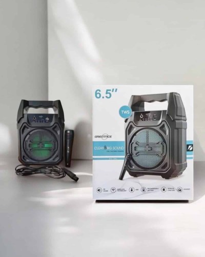 1283 Kablosuz Bluetooth Hoparlör, 6.5 inçlik güçlü woofer boyutuyla etkileyici bir ses performansı sunar. 15W çıkış gücü sayesinde derin bas ve net tiz sesler üreterek müzik dinleme deneyiminizi bir üst seviyeye taşır. Taşınabilir yapısı, şarj edilebilir 1200mAh lityum pil ile birleşerek, evde, dışarıda veya yolculukta rahatça kullanım sağlar. Hoparlör, USB, TF kart, FM radyo ve mikrofon desteği gibi çoklu bağlantı seçenekleri sunarak çok yönlü bir kullanım sağlar. Ürün, kablosuz mikrofon ve USB kablosu gibi aksesuarlarla birlikte gelir, böylece karaoke veya taşınabilir müzik çalar olarak kullanılabilir. Dayanıklı plastik kasası ve ergonomik tasarımıyla uzun ömürlü ve rahat bir kullanım imkanı sunar.