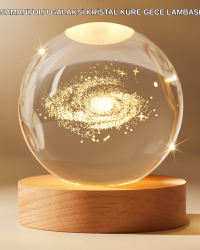Bu özel galaksi küresi, kristalin iç kısmına lazerle işlenmiş Samanyolu tasarımıyla dikkat çeker. Işık yandığında detaylar adeta canlanır; ışık kapalıyken bile şık bir dekoratif obje olarak etkileyici durur. 6 cm kristal küre ve doğal ahşap taban, minimal ve modern dekorasyonla kusursuz uyum sağlar. USB kablosundaki açma-kapama düğmesi pratik kullanım sunar.