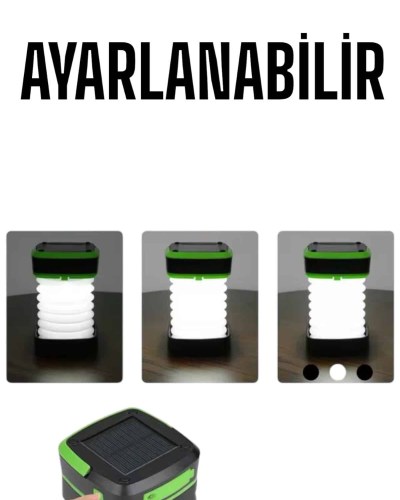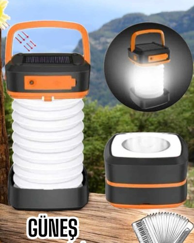 Katlanabilir Kamp Lambası Solar Fener Görünümlü 3 Kademeli Şarjlı