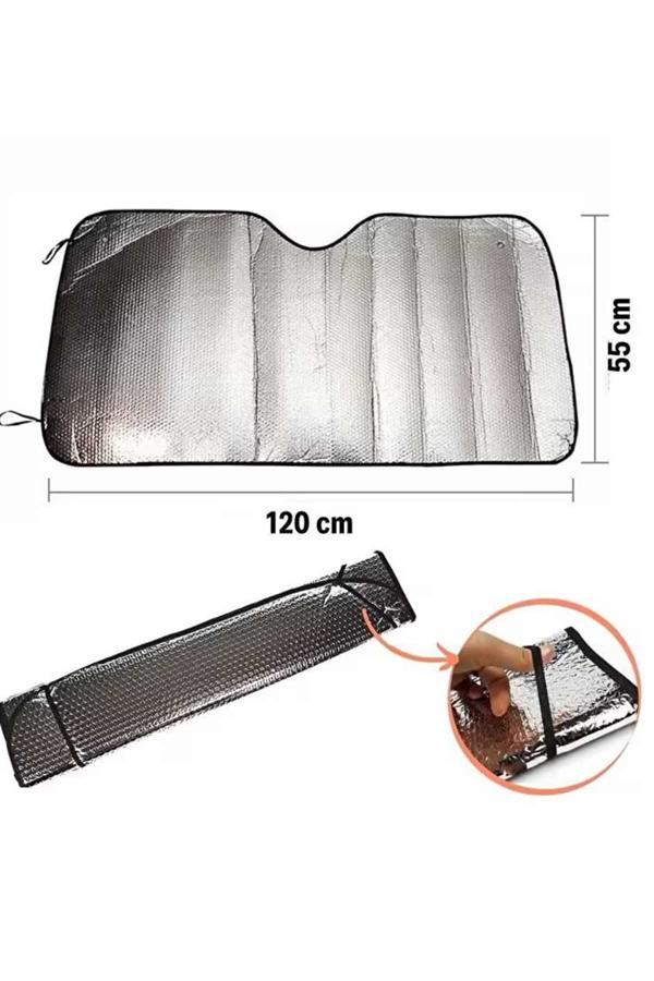 Yüksek Etkili Güneş Işığı BlokajıAraba Güneşliği, metalize reflektörlü aluminyum yüzeyi ile aracınızın ön camını %99 oranında güneş ışığından korur. Bu özel tasarım, yazın sıcak havalarda aracınızın iç sıcaklığını önemli ölçüde düşürür, böylece aracı daha hızlı soğutmanızı sağlar ve klima kullanımını azaltarak enerji tasarrufu sağlar.Ekstra Koruma ve İzolasyonSüngerli iç yapısı, aracınızın aşırı ısınmasını engelleyerek iç mekanın daha serin kalmasına yardımcı olur. Ayrıca, bu yapı aracınızın deri, plastik ve kumaş aksamlarını güneşin zararlı ışınlarından korur, böylece iç yüzeylerin solmasını ve hasar görmesini önler.Pratik ve Taşınabilir TasarımKolayca katlanabilir yapısı sayesinde, aracınızda yer kaplamadan saklanabilir ve her zaman kullanıma hazır hale gelir. Hem pratik hem de kullanışlı olan bu güneşlik, yaz aylarında aracınızın sıcaklığını kontrol altında tutarak konforlu bir sürüş sağlar.