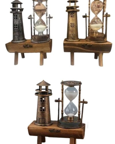 Hediyelik Eşya Retro Deniz Fenerli Kum Saati Ahşap Görünümlü Dekoratif Eşya