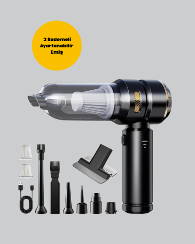 Küçük alanlarda pratik, araç içinde ise profesyonel temizlik sağlayan bu şarjlı süpürge, güçlü performansı ve taşınabilir yapısıyla öne çıkıyor. Kablosuz kullanım imkânı sayesinde priz arama derdi olmadan her yerde kullanılabilir. 15.000 PA maksimum emiş gücü, günlük tozlardan derinlemesine temizlik gerektiren alanlara kadar etkili sonuç sunar. Üç kademeli emiş seçeneği ile kullanım alanına göre performans ayarı yapabilirsiniz. Üfleme fonksiyonu sayesinde sadece süpürmekle kalmaz, tozları ve partikülleri dışarı atarak temizlik yapabilirsiniz. HEPA filtre sistemi, havadaki en küçük partikülleri bile hapsederek daha sağlıklı bir ortam sağlar. Yıkanabilir filtre özelliği, kullanım kolaylığı sunarken uzun ömürlü olmasını sağlar. Kompakt boyutu ve hafifliği sayesinde kolayca taşınabilir. Ergonomik tasarımı uzun süreli kullanımlarda bile rahatlık sağlar. Sessiz motor teknolojisiyle çalışırken çevrenizi rahatsız etmez. Dar ağızlı başlık, fırçalı başlık ve üfleme aparatı gibi farklı aksesuarları sayesinde her yüzeyde en iyi sonucu alabilirsiniz. Araç içi detaylı temizlikte mükemmel performans sunan bu süpürge, evinizde de küçük alanlarda kullanabileceğiniz ideal bir temizlik yardımcısıdır.
