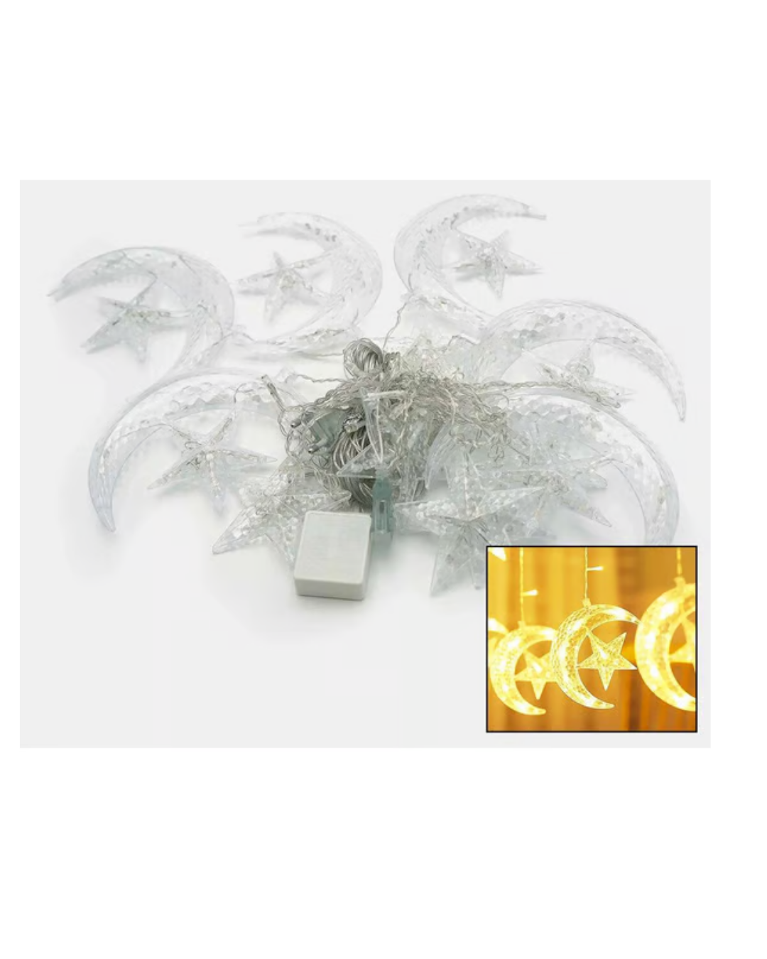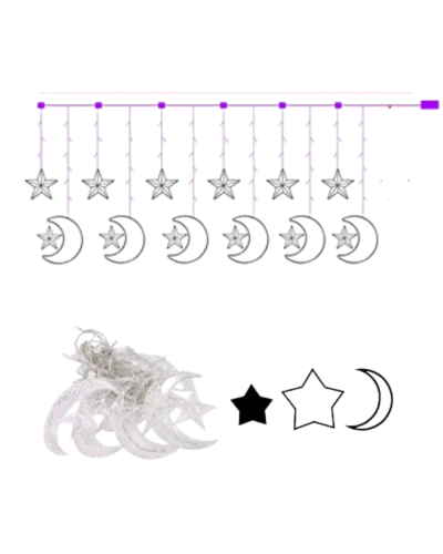 Hilal Yıldız Perde LED Işık 2 Modlu Sıcak Beyaz Dekoratif Aydınlatma