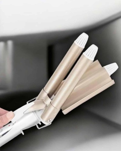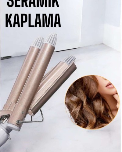 Saç maşası, tüm gün kalıcı bukleler için özel olarak tasarlanmıştır. 25 mm çapındaki üç namlulu seramik kaplama, saçlarınızı yıpratmadan şekillendirir ve sağlıklı bir görünüm kazandırır. PTC ısıtma sistemiyle donatılmış cihaz, yalnızca 30 saniyede ısınarak yoğun tempolu günlerde bile kolayca kullanıma hazır hale gelir. 170°C ve 220°C arasında değişen ayarlanabilir sıcaklık seviyeleri, ince ve kalın telli saçlar için ideal ısıyı seçmenize olanak tanır. Ergonomik tutamaç, haşlanma önleyici tasarımı ve ısı yalıtımlı braketi sayesinde güvenli bir kullanım sunar. Altın rengi estetik tasarımı, cihazın şıklığını tamamlar ve onu günlük bakım rutininizin vazgeçilmez bir parçası haline getirir.