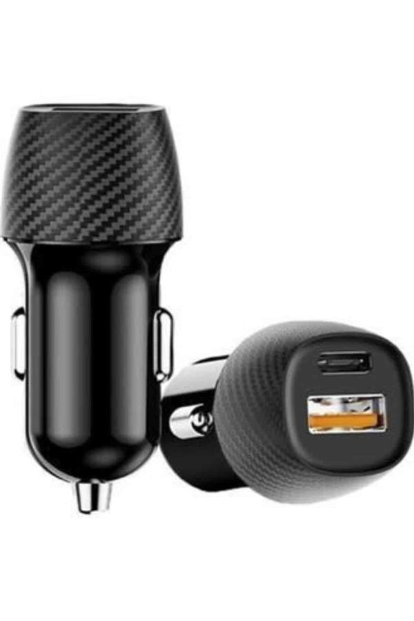 Hızlı Oto Şarj Cihazı 38W Çift Girişli HIzlı Şarj Oto Çakmaklık Type-C